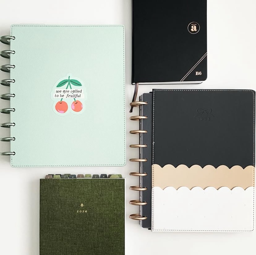 I like choosing a word or phrase each year, and have been given one each year, because it gives me a focus for how I am live out the year. It also gives me the lens through which I can see how God is growing me so that I can align with Him in that. These are the new planners and journals I’ve chosen to be intentional with that purpose.