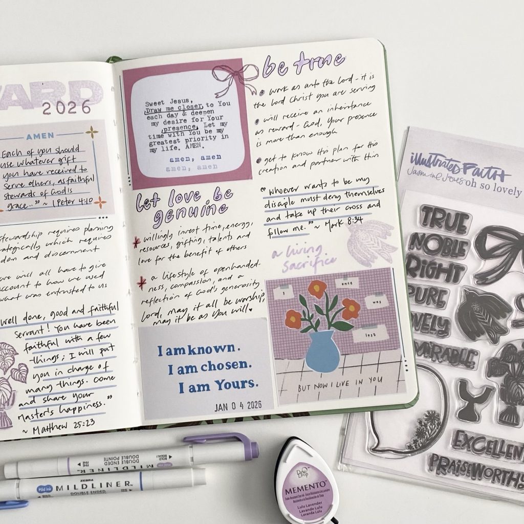 I was encouraged by these restful prayers in @kristina.proffitt latest set of Typewriter Prayers for Illustrated Faith’s digital Print Pray Shop. I also used some printable Glorious Grace ephemera which is for the new devotional on the book of Ephesians.