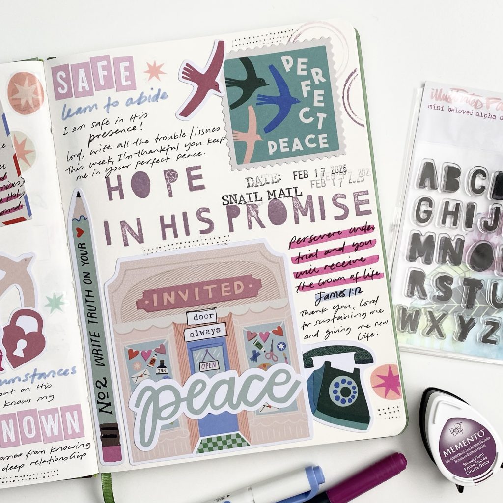 The alpha stamp is also by Illustrated Faith and can be found here: Mini Beloved 3×4 Alpha Stamp. Note: out of stock stamps are usually brought back if there is sufficient interest. Feel free to contact IF, if interested, to request it.
