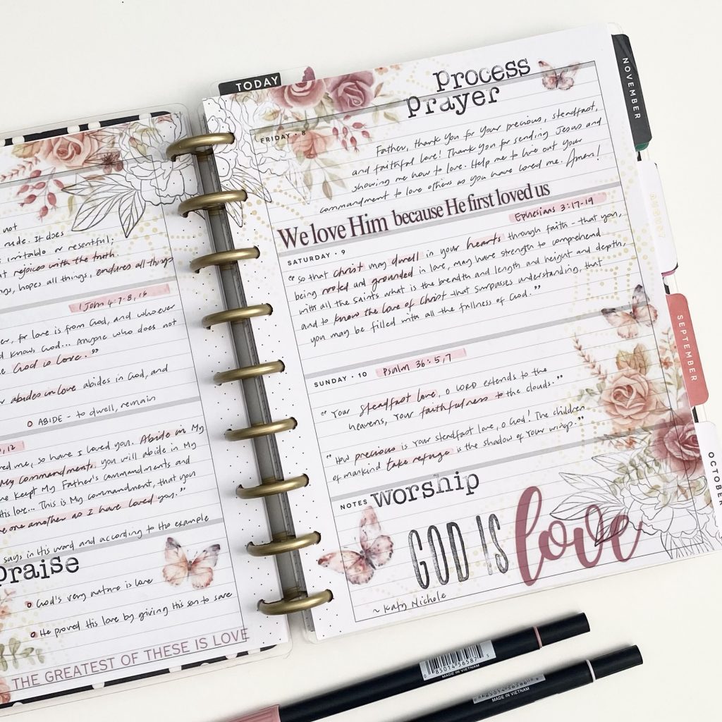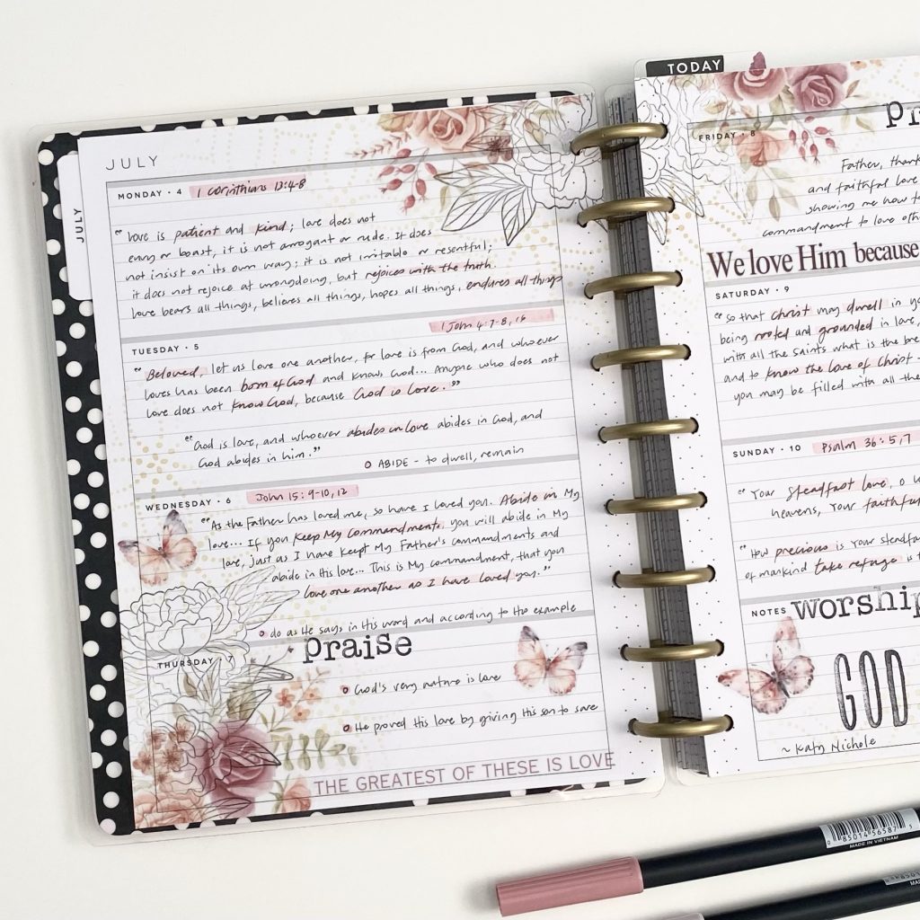These pages in my horizontal Happy Planner feature the following products by Creative Worship Stamps. These are affiliate links, please see the Privacy Policy for details.