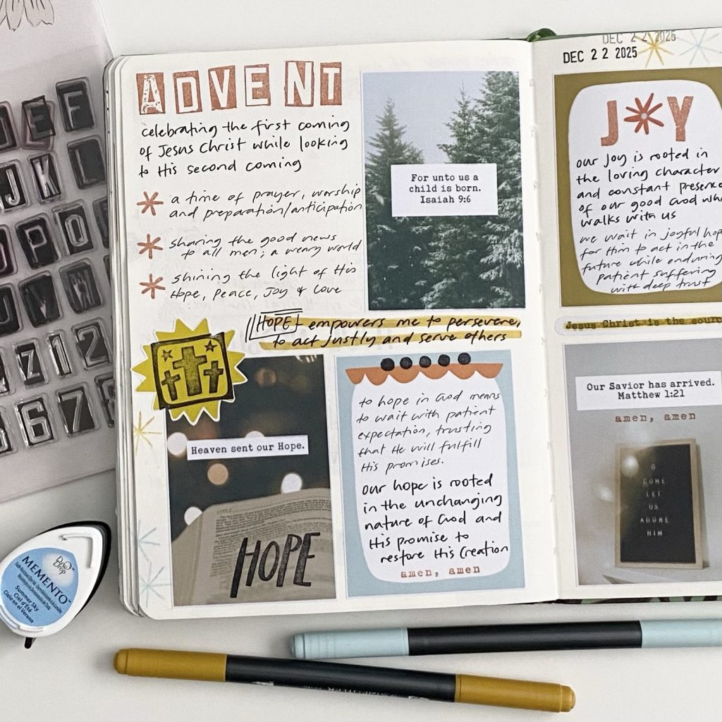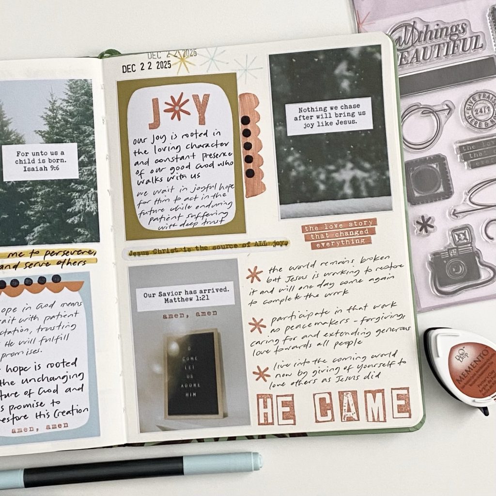 I used two new printables by Kristina @kristina.proffitt for the Illustrated Faith’s digital Print Pray Shop. They are called “Hope Has a Name” and “Joyful Journal Notes” which invited some reflections on the advent season (notes are from the Bible Project).