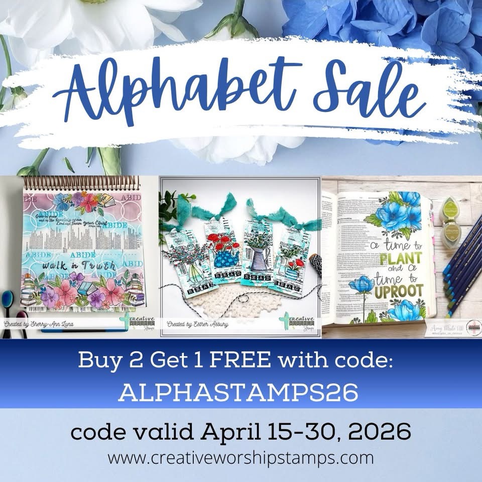 Creative Worship Stamps is hosting a Fun with Alphas hop over on Instagram. Hop along and be inspired by the variety of ways we’ve used alphabet stamps, and don’t forget to leave a comment at each stop for your chance to win a $25 gift code to CreativeWorshipStamps.com.