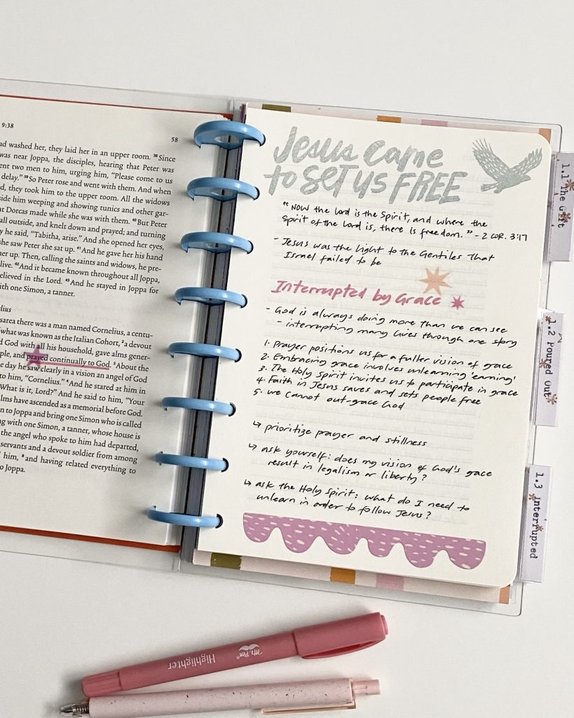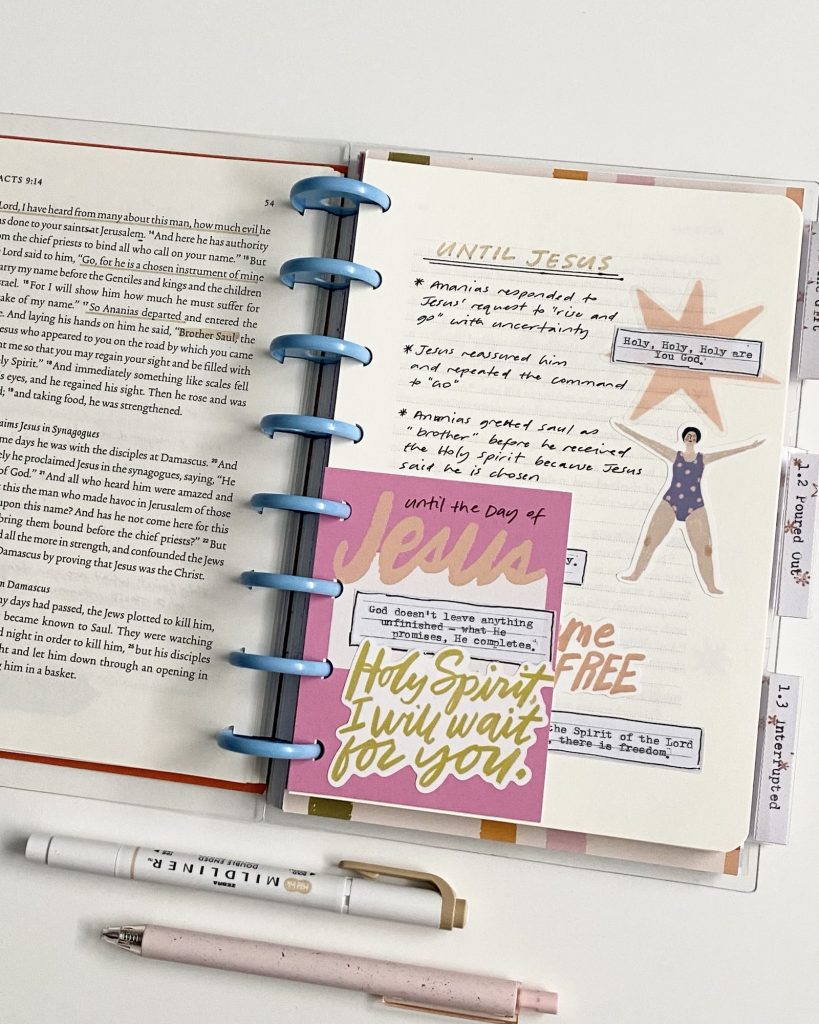 I’m using the devotional kits by Illustrated Faith for June and July 2025 based on the book of Acts. The study is written by Taylor Rauschkolb who is @bravelittletaylor on Instagram. It looks at the lives of the early church to see what life surrendered to and empowered by the Holy Spirit looks like.