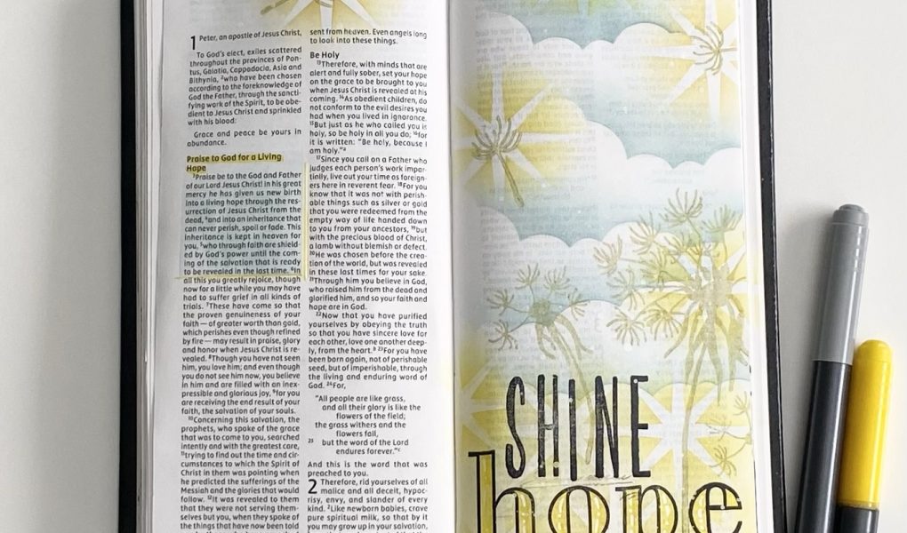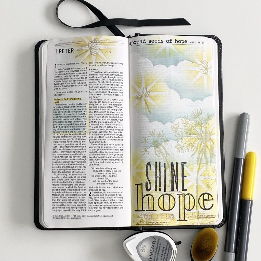 This bible journaling page is a reminder to be rooted in His hope so that we can more fully shine that light into the world.