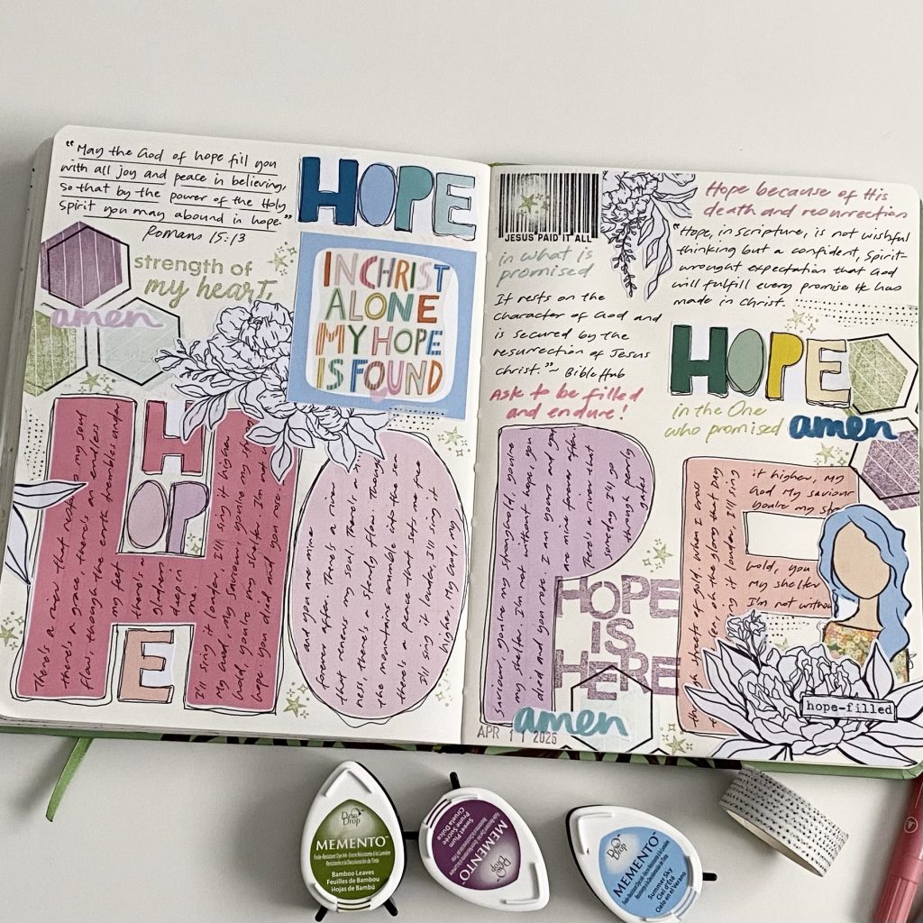 I was going to print the “Hope & Amen” printable as is, but the Holy Spirit said no, make it as large as possible because our hope is huge. My printer printed vertical lines on the letters so I wrote on them the lyrics to a song called “There’s a River” by Erik Nieder.