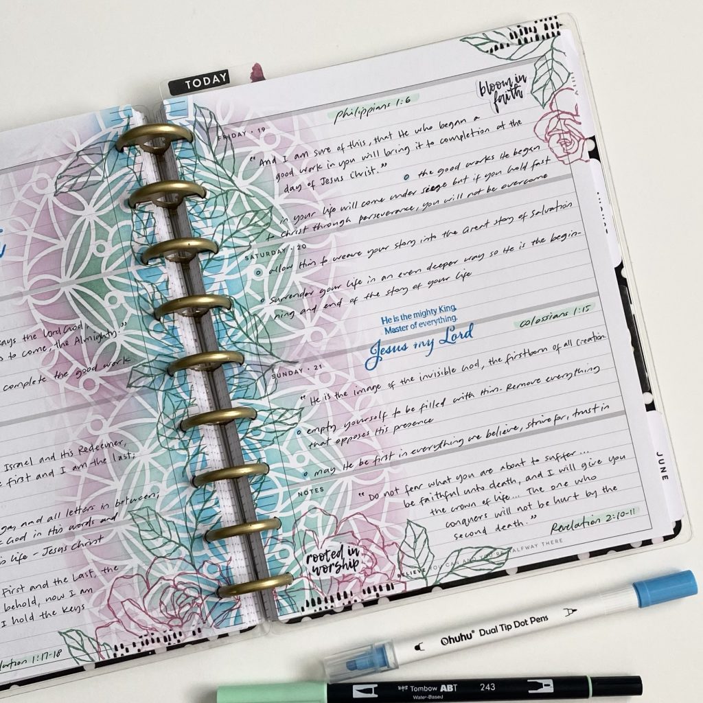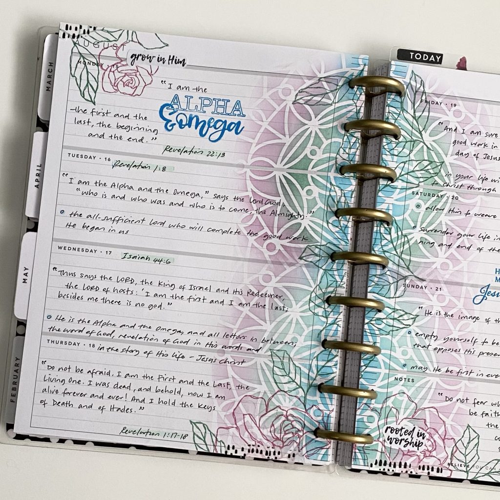 These pages in my horizontal Happy Planner features the following products by Creative Worship Stamps. These are affiliate links, please see the Privacy Policy for details.