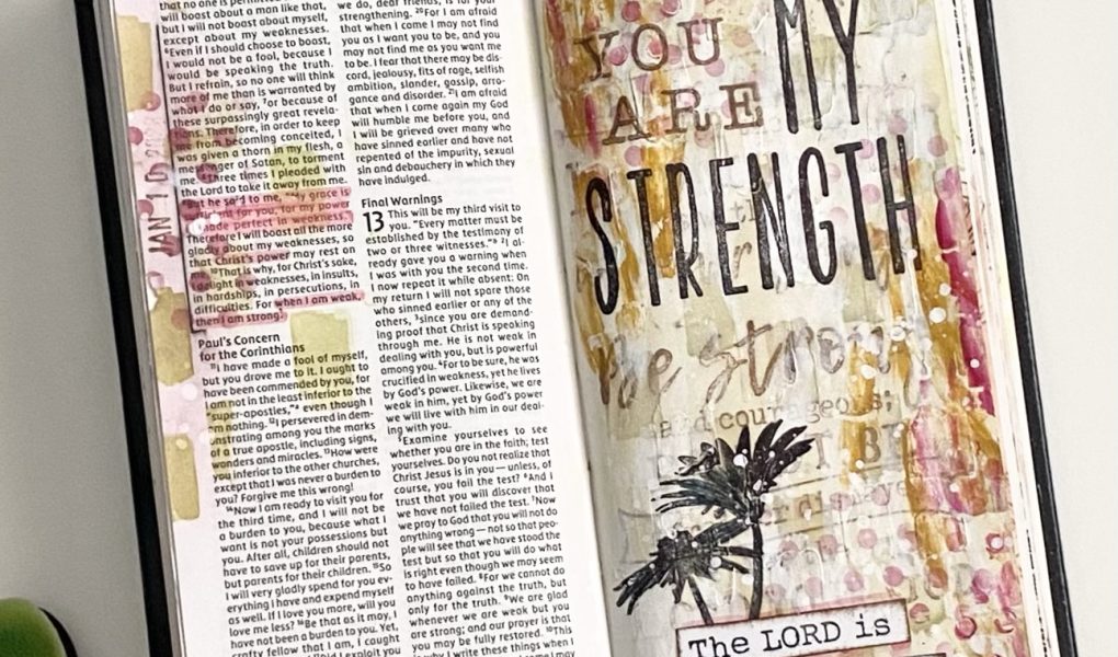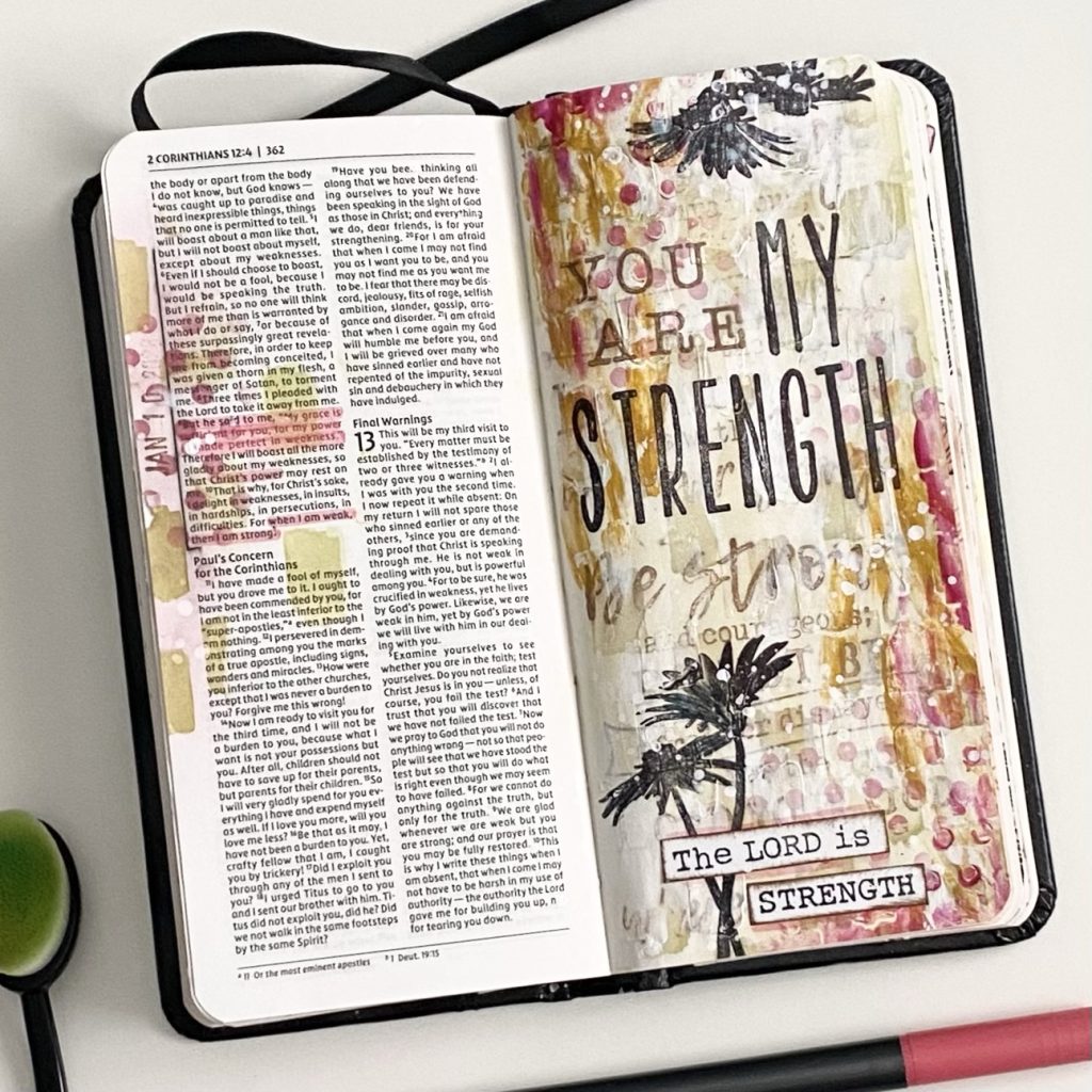 I sat down over the weekend to creatively journal while reflecting on the Lord being my strength. I had a picture and process in mind but the end result is very unexpected.
